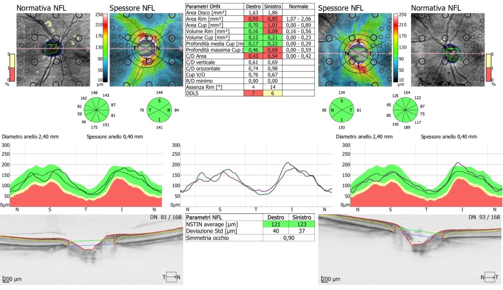 La cura del glaucoma prevede la massima attenzione e precisione per poter ridurre al minimo la progressione di questa grave malattia, che rappresenta ancora oggi una delle principali cause di cecità. Una visita oculistica con misurazione della pressione intraoculare, l’esame del campo visivo accompagnato dallo studio, mediante OCT, della morfologia della testa del nervo ottico sono gli elementi fondamentali per la diagnosi e la valutazione dell’efficacia della terapia. La moderna strumentazione permette di poter interpolare i dati raccolti dal campo visivo e dall’esame OCT, personalizzando al massimo la cura e ottenendo i migliori risultati a lungo termine.